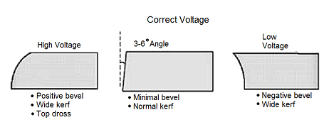 Precision cut processes produce bevel angle in the 0-3° range. Conventional plasma cutting will produce larger bevel angles. Proper torch height control will produce the smallest bevel angle, as well as improved kerf width and minimal top edge rounding. A slower cut speed can be used when cutting circles and corners to reduce bevel.
