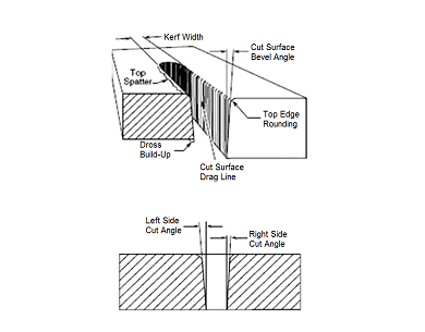 Precision cut processes produce bevel angle in the 0-3° range. Conventional plasma cutting will produce larger bevel angles. Proper torch height control will produce the smallest bevel angle, as well as improved kerf width and minimal top edge rounding. A slower cut speed can be used when cutting circles and corners to reduce bevel.
